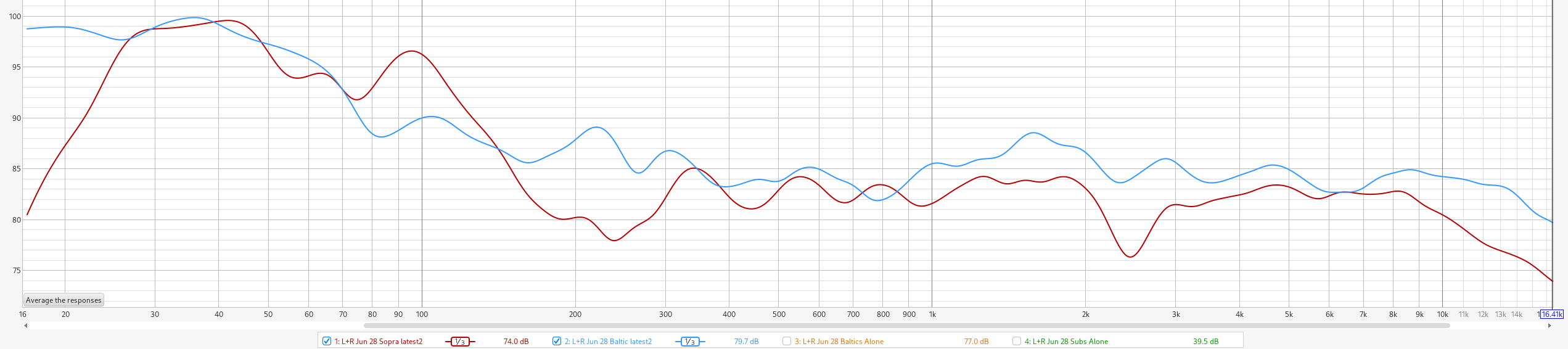 Bellow are in-room measurements of the Sopra3 in the living room, and Baltic 2 + JBL DIY in the music room. 1/3 octave smoothing.